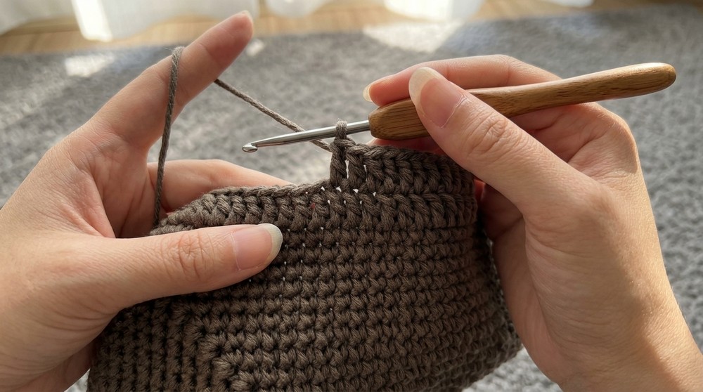 - Insert hook into the next stitch, yarn over, pull up a loop, and complete a double crochet.