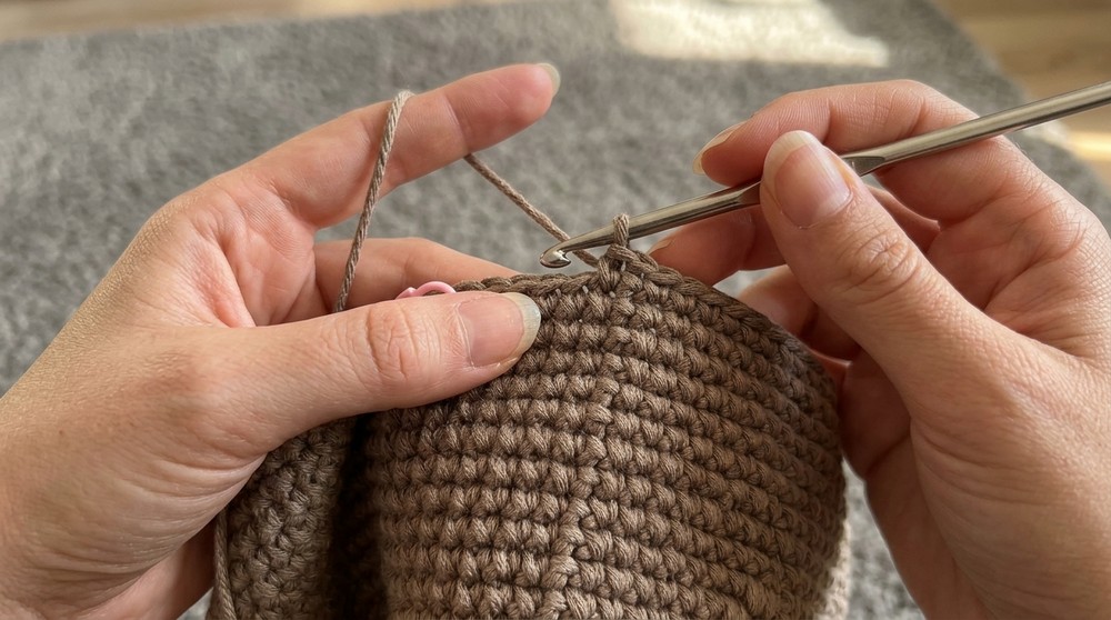 - Place a stitch marker in the first single crochet to mark the beginning of the round.