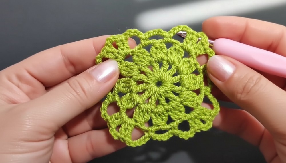 - Pattern: Fan – chain 2 – Fan – chain 2 around.